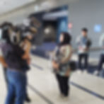 After going through customs, there were interviews by Aichi Television Broadcasting Co., Ltd. and Chukyo TV. Broadcasting Co., Ltd. Assistant General Manager, Kumazawa of International Division explained the acceptance policy and systems.